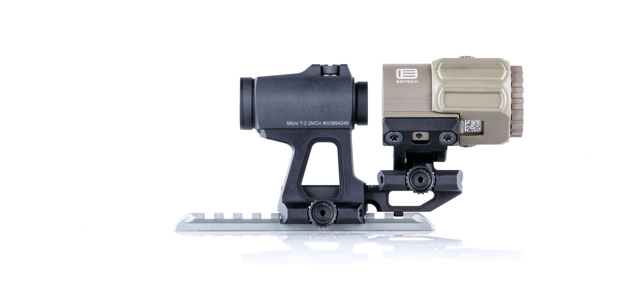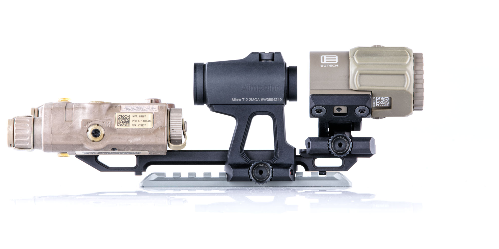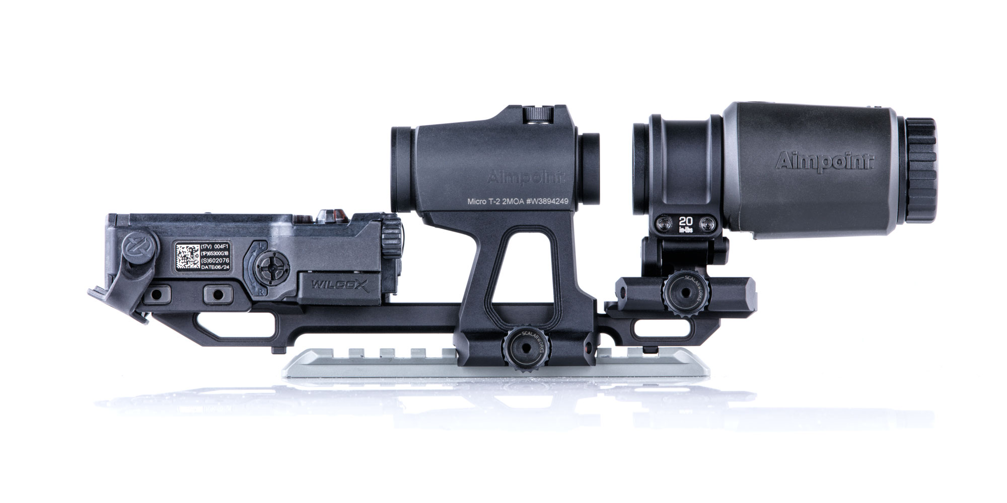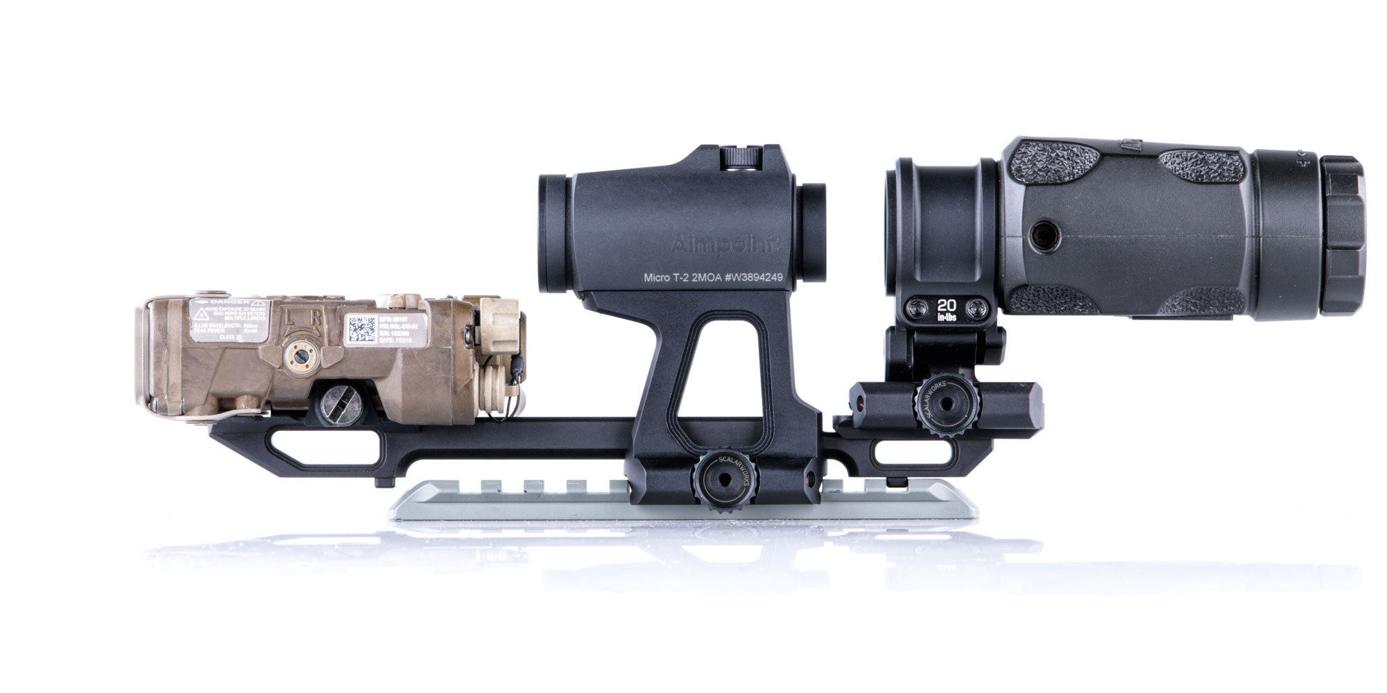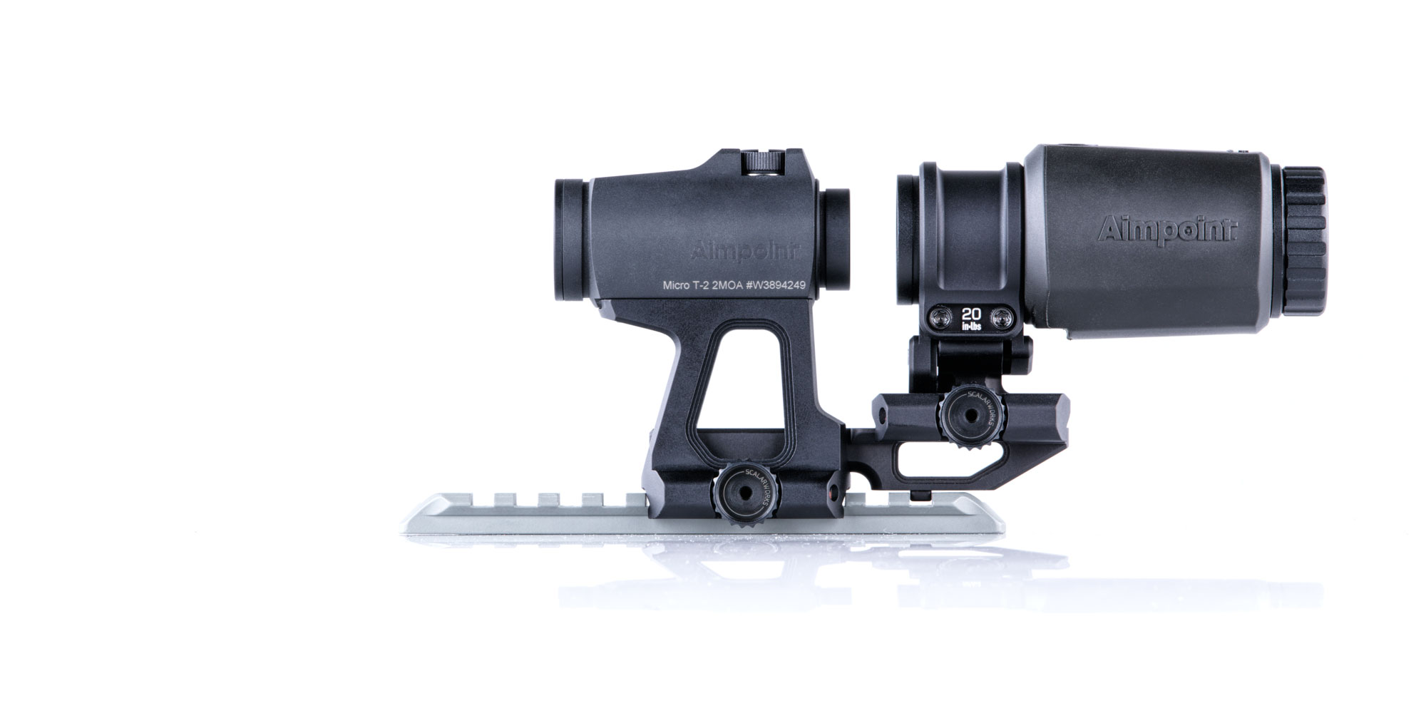 LEAP/02 redefines the standard for mounting your Aimpoint Micro T2 footprint optic at 2.26" height. The LEAP/02 is the lightest 2.26" height red dot sight mount and includes hard mounting points to extend it's capabilities into the future.